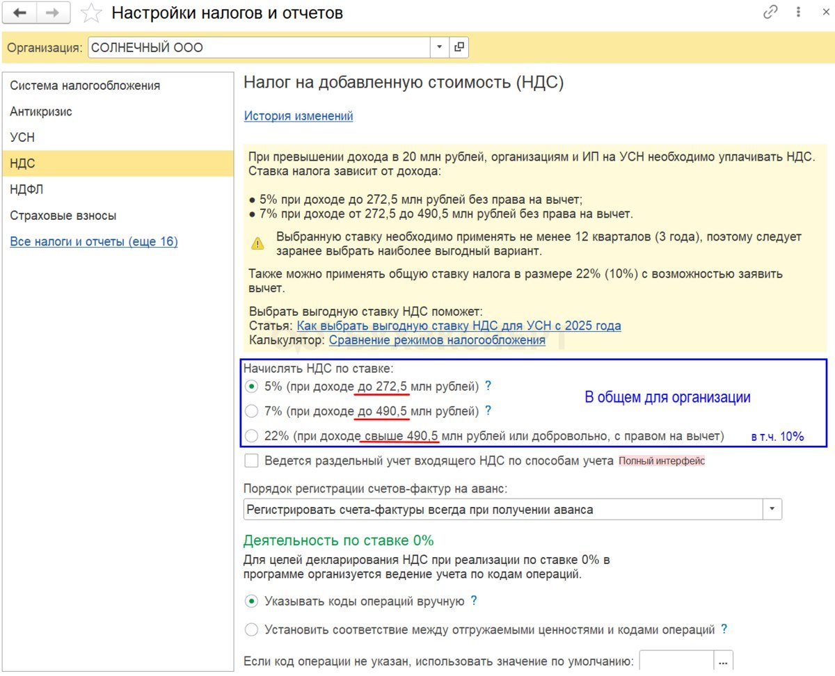 - Продажа товаров на УСН при применении специальных (5%,7%) ставок НДС, если есть отгрузка с НДС и Без НДС в 1С