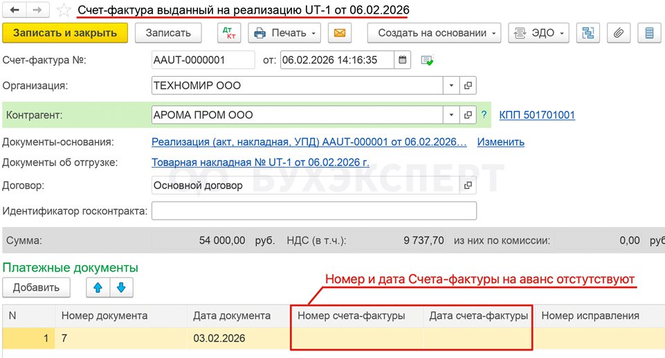 Поэтому строку 5б счета-фактуры в 1С БП после синхронизации с УТ необходимо заполнить вручную.