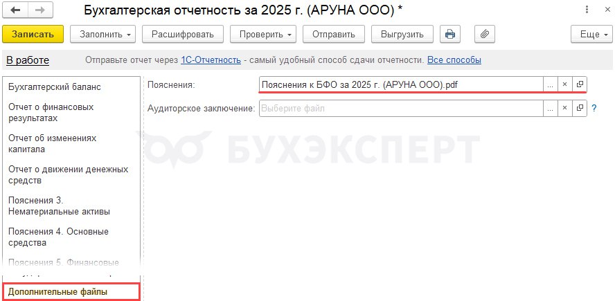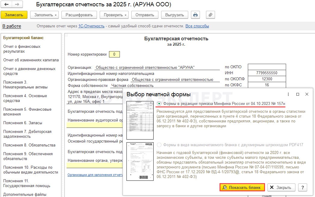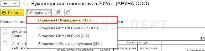 - Составление бухгалтерской финансовой отчетности за 2025 в 1С