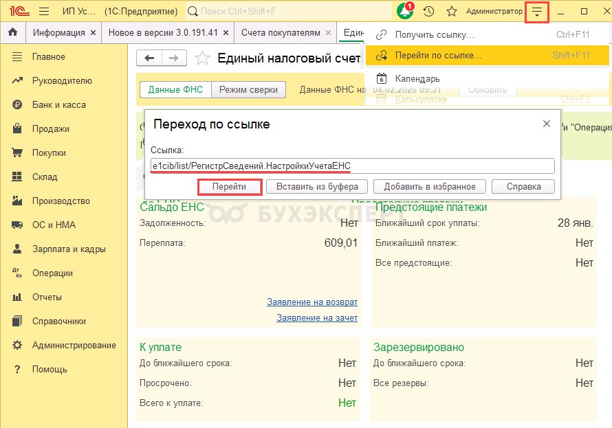 Эфир 18.02.2026 11:00 ЕНС и ЕНП с 2026 года в 1С:Бухгалтерия