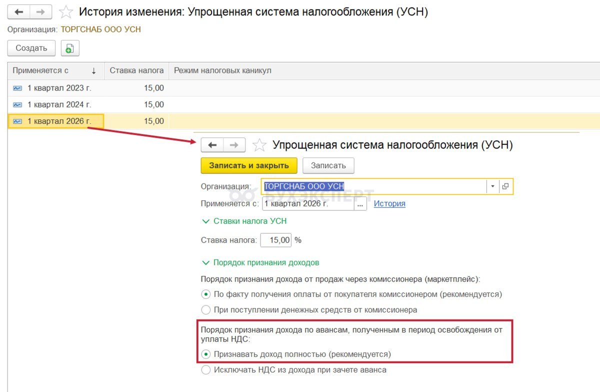 Налоговая реформа – 2026. УСН и НДС в 1С:Бухгалтерия, часть 3. Авансы полученные — подробности