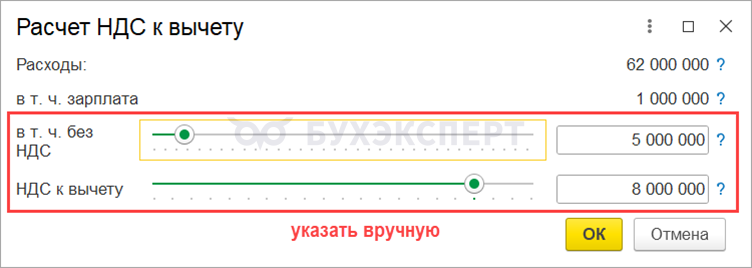 - в т.ч. расходы без НДС — 5 000 000 руб.