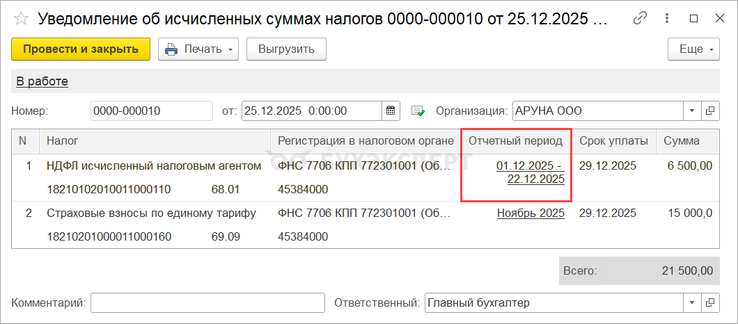 Уведомление по НДФЛ за период с 23 по 31 декабря и по страховым взносам за декабрь 2025 досрочно