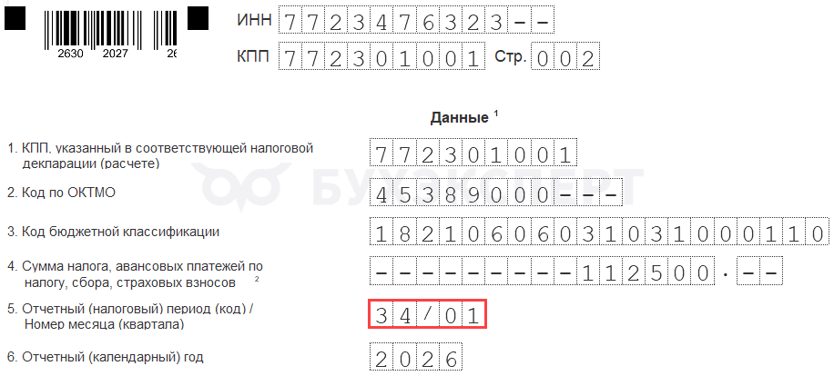 - Отчетный (налоговый) период — указываются коды, определяющие период