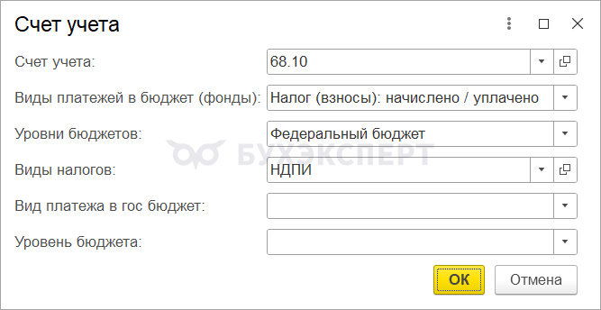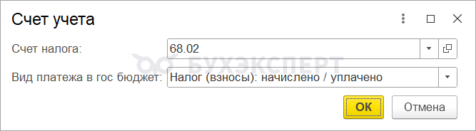 - Отражение в учете — подставляется автоматически соответствующий налогу счет учета и аналитика