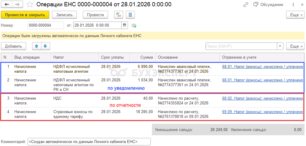 Подробнее — Механизм начисления и уплаты ЕНП с 2026 года, если подключена интеграция с ЛК ЕНС в 1С