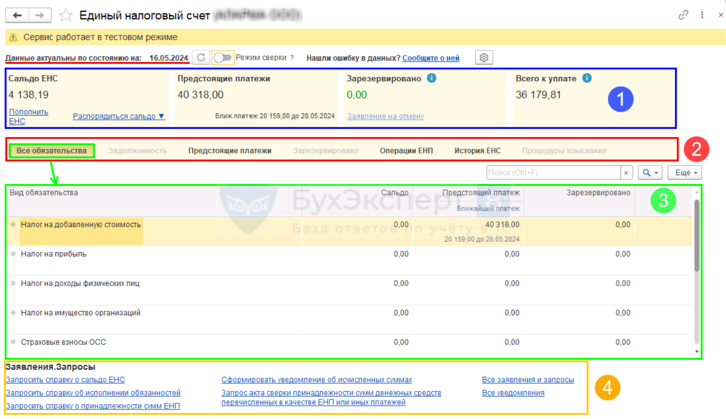 В 1С:Бухгалтерия при настроенной интеграции доступны данные по единому налоговому счету из Личного кабинета ФНС.