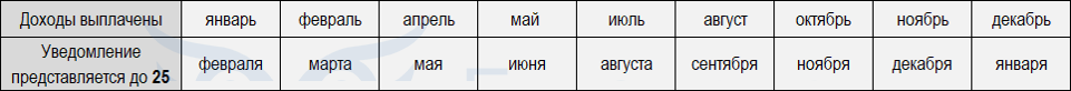 Уведомление представляется в зависимости от месяца выплаты дохода: