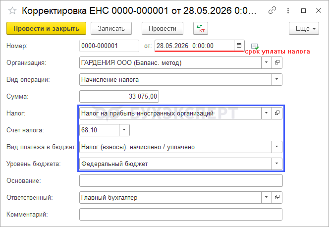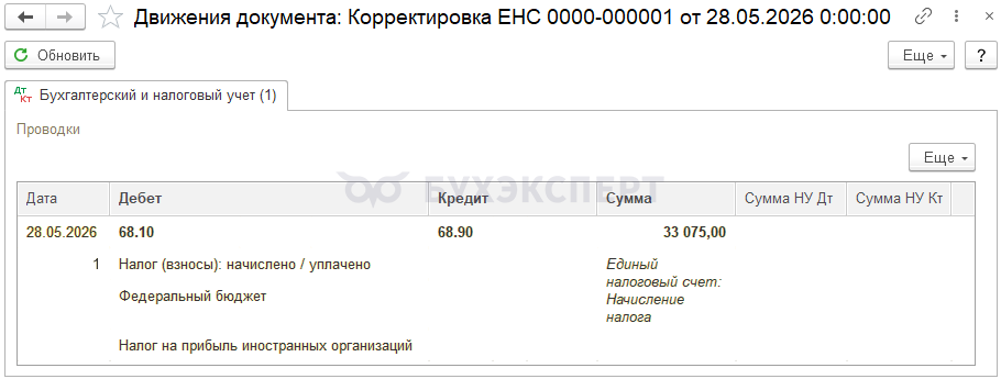 Формирование обязанности по налогу на прибыль на ЕНС в 1С
