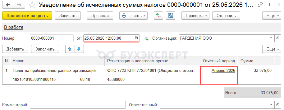 Мы рассмотрели, как создать и отправить в ИФНС уведомление об исчисленном налоге на прибыль налогового агента.
