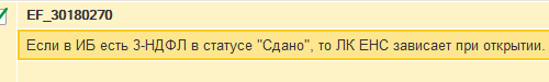 Если в ИБ есть 3-НДФЛ в статусе «Сдано», то ЛК ЕНС зависает при открытии.