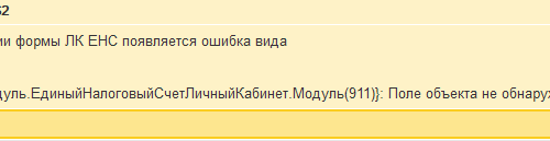 {ОбщийМодуль. ЕдиныйНалоговыйСчетЛичныйКабинет. Модуль(911)}: Поле объекта не обнаружено (ИНН ЮЛ)