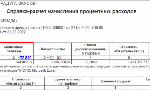 Первоначальная сумма обязательств для расчета процентного расхода корректируется на сумму арендной платы по графику и начисленного ранее процентного расхода:
