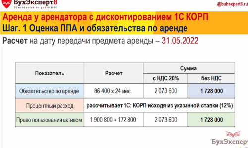 По видео разбору Аренда у арендатора с дисконтированием 1С КОРП.