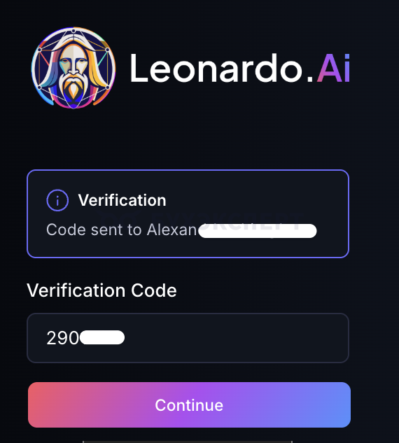 Вставьте код проверки, который пришел на электронную почту в поле ввода кода и нажмите Continue.