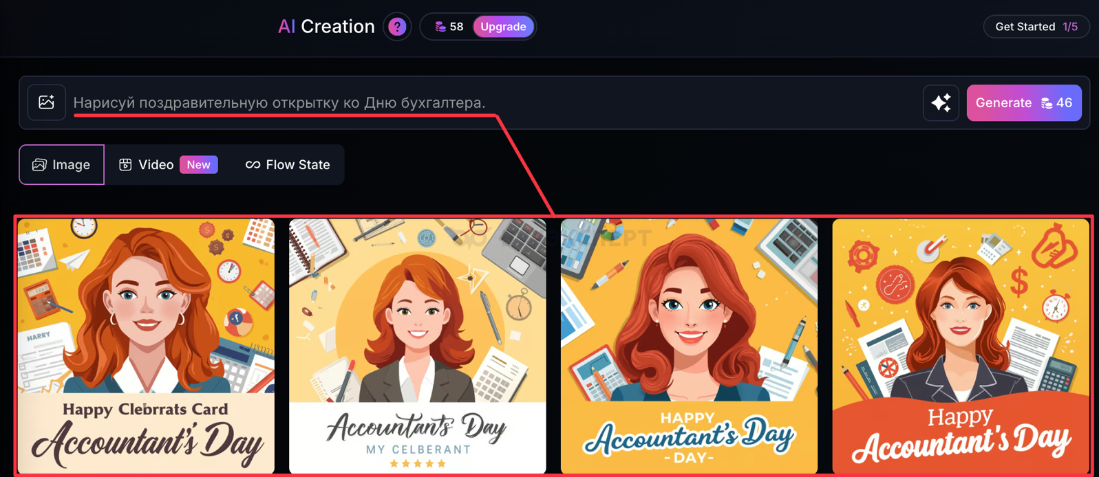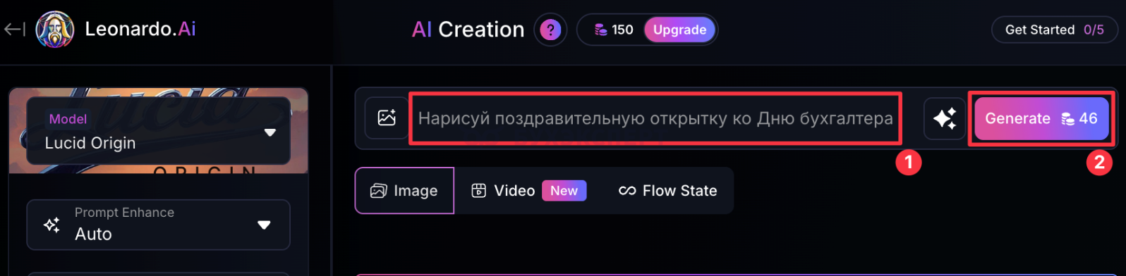 Введите текстовый запрос в окне ввода и нажмите кнопку Generate.