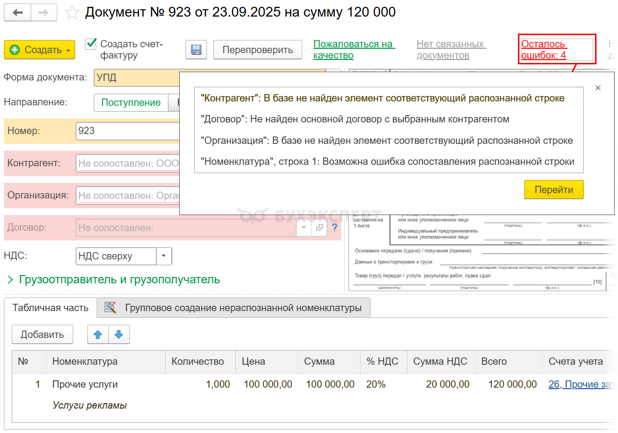 - Расшифровка ошибок в сервисе 1С:Распознавание первичных документов