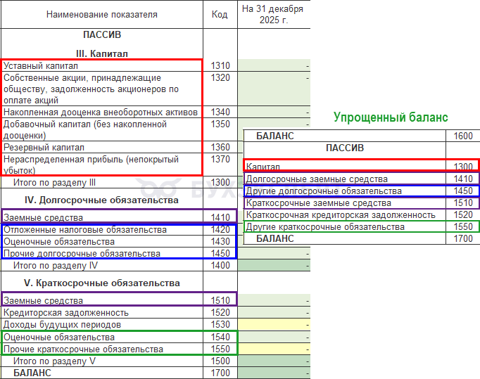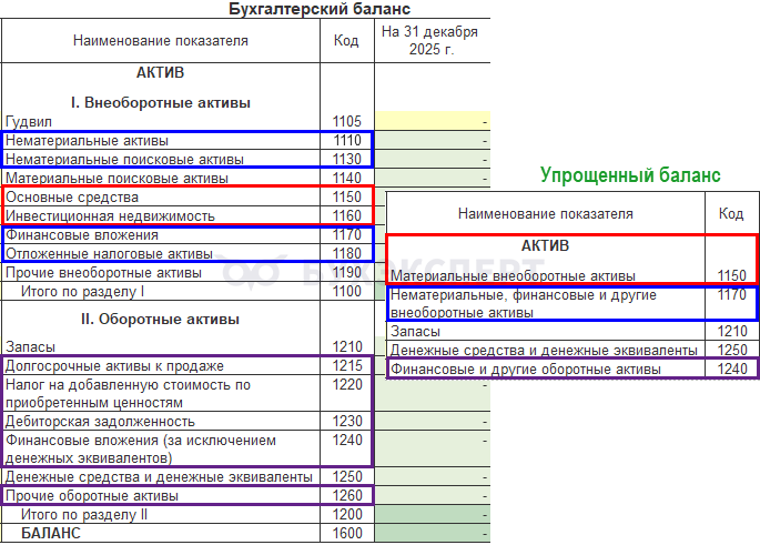 Сопоставление форм Баланса упрощенной и полной бухотчетности.