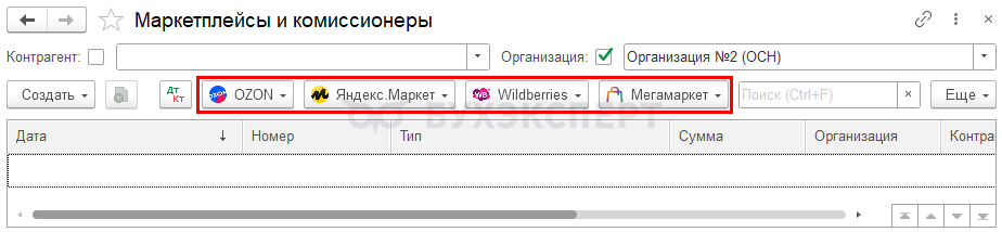 Для загрузки документов на услуги, оказанные маркетплейсами используйте команду Загрузить услуги маркетплейса (из файла) в разделе Продажи — Маркетплейсы и комиссионеры.