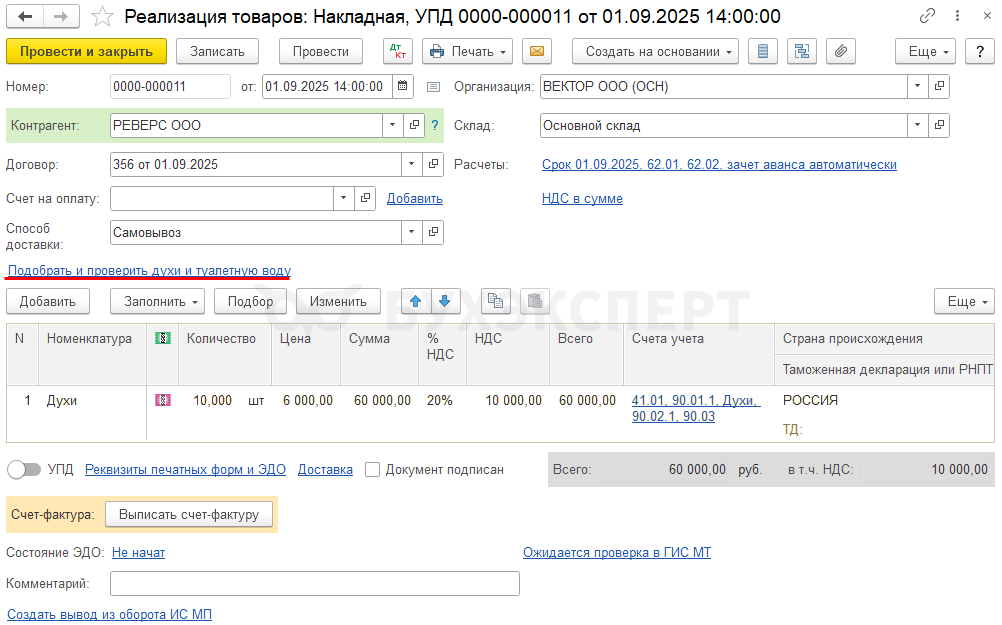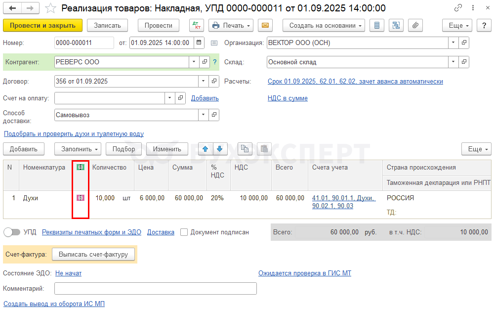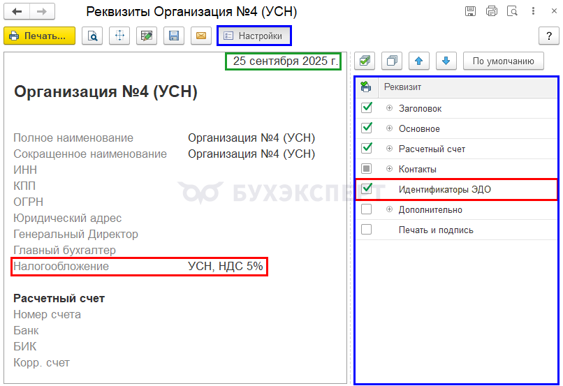 - идентификатор ЭДО (если установлен флажок)