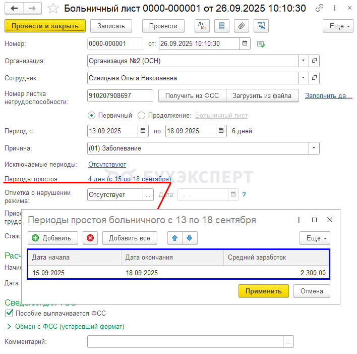 - Расчет больничных при простое