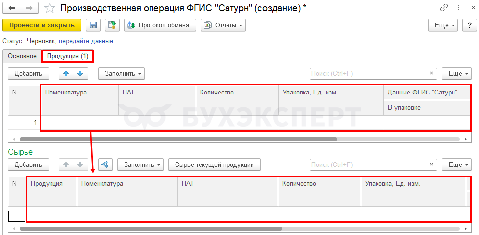 - Израсходованное сырье в разрезе продукции ФГИС «Сатурн»