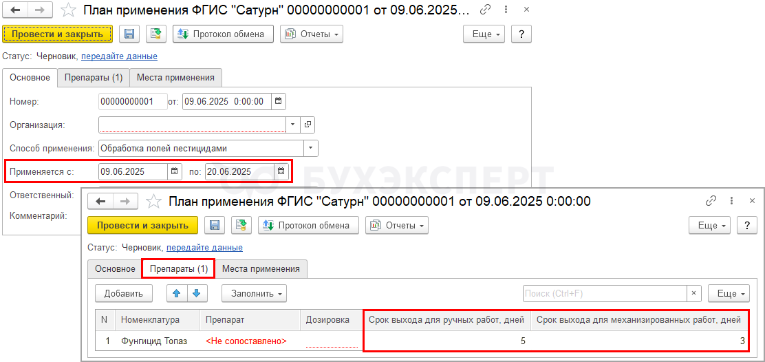 - Даты окончания применения химикатов и сроки выхода работ