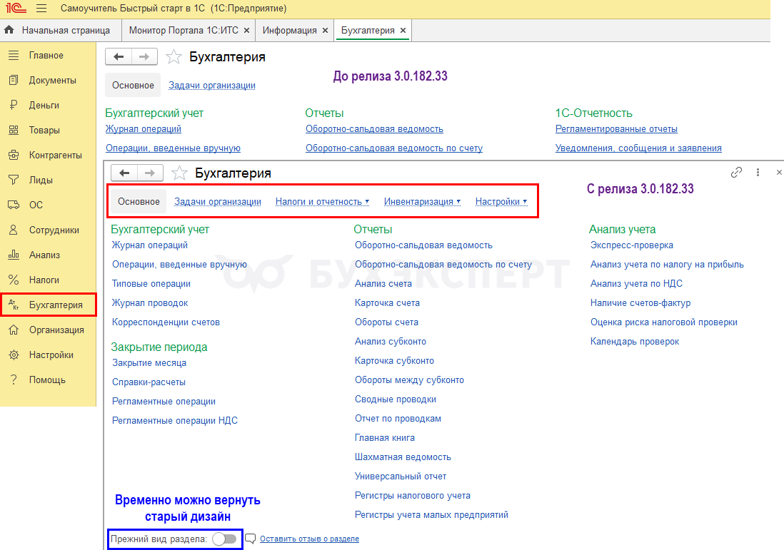 - Изменения в навигации раздела Бухгалтерия в простом интерфейсе
