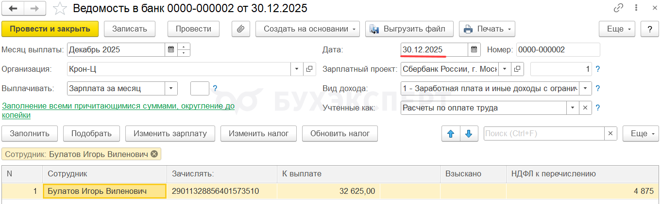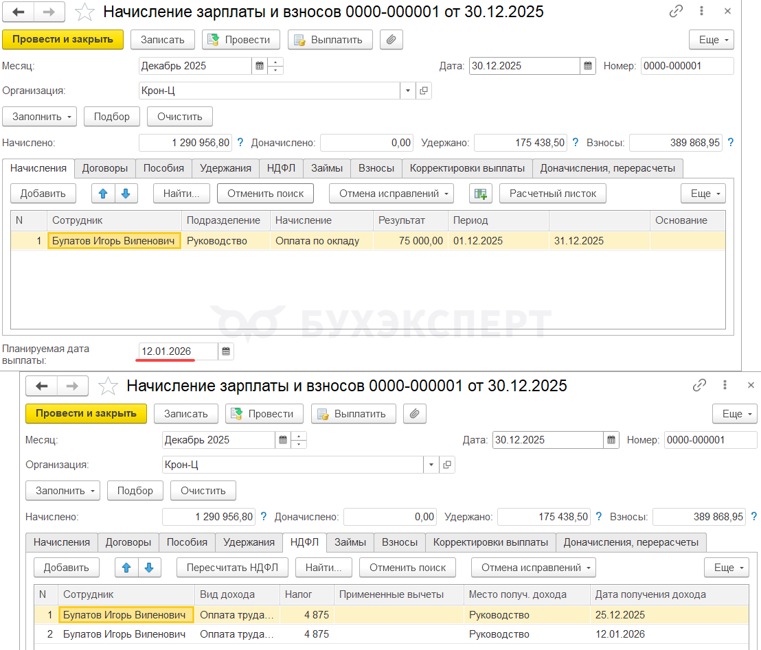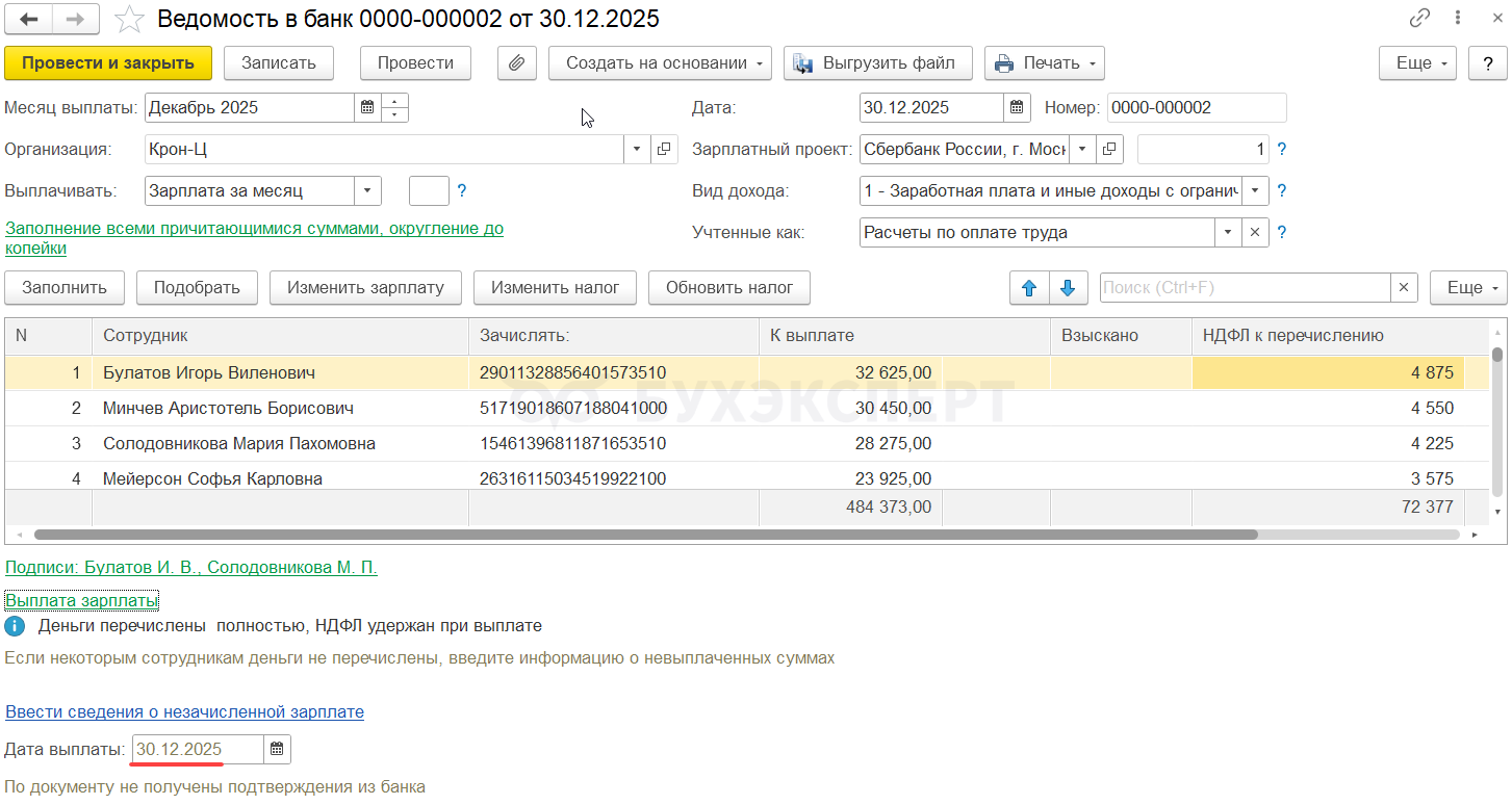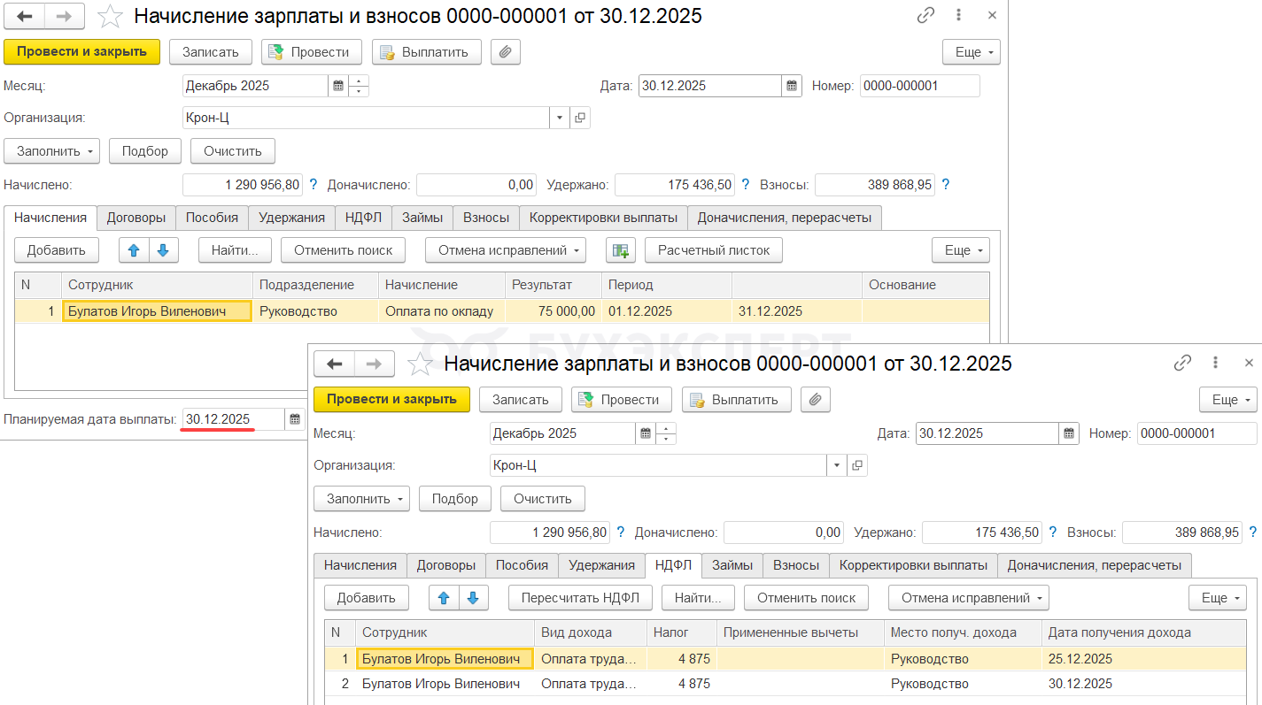 Зарплата за декабрь 2025 выплачена в декабре. Основные особенности отражения в учете НДФЛ, если зарплаты за декабрь выплачена 30.12.2025: