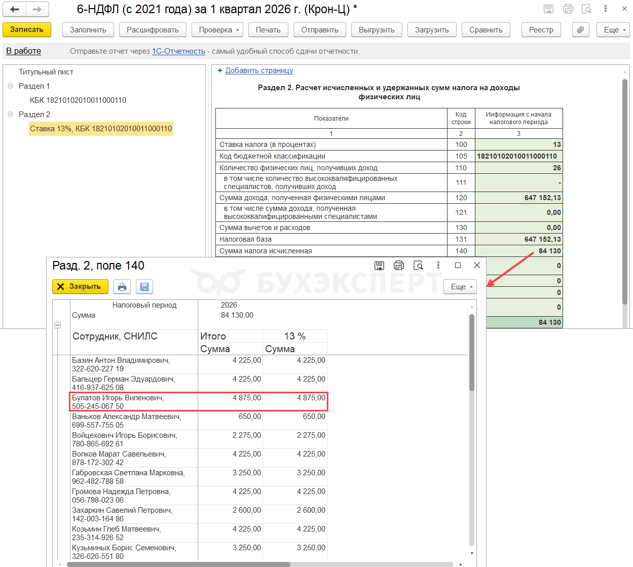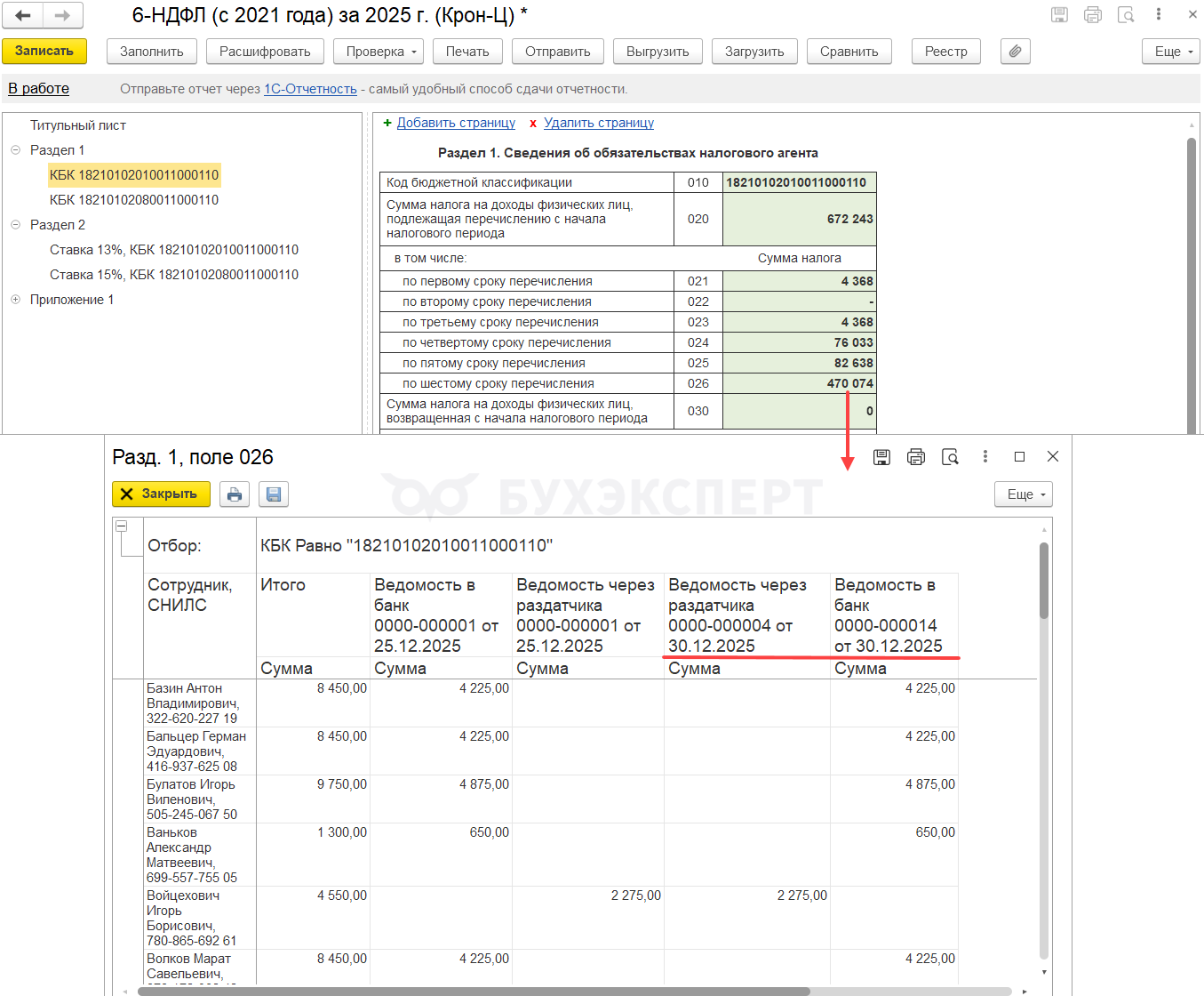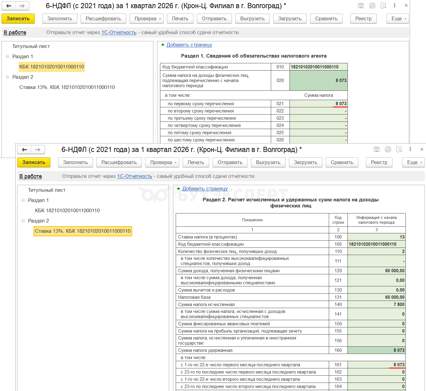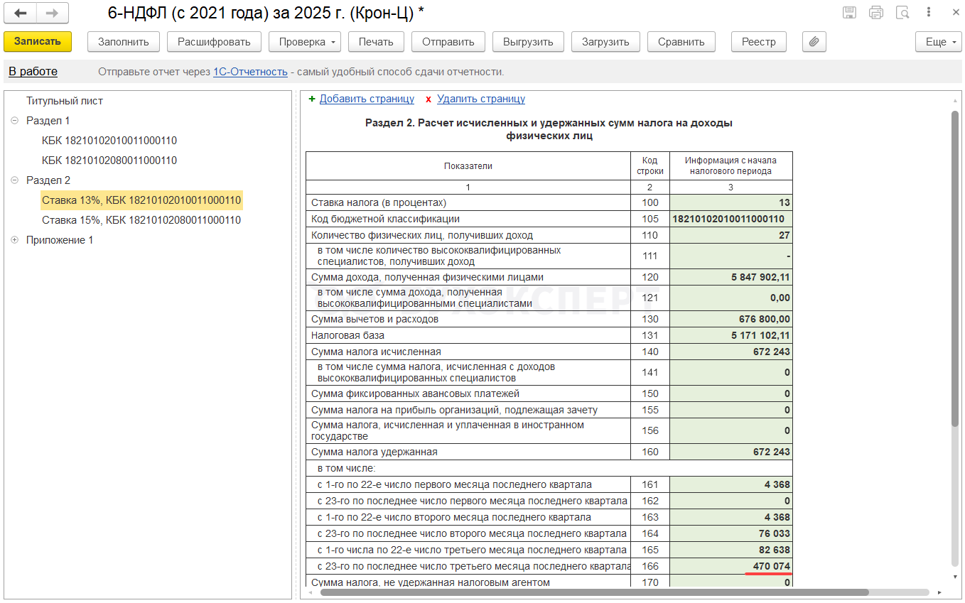 - Если зарплата за декабрь 2025 выплачена в январе 2026, удержанный налог будет попадать в стр. 021 Раздела 1 и стр. 161 Раздела 2 отчета за 1 квартал 2026