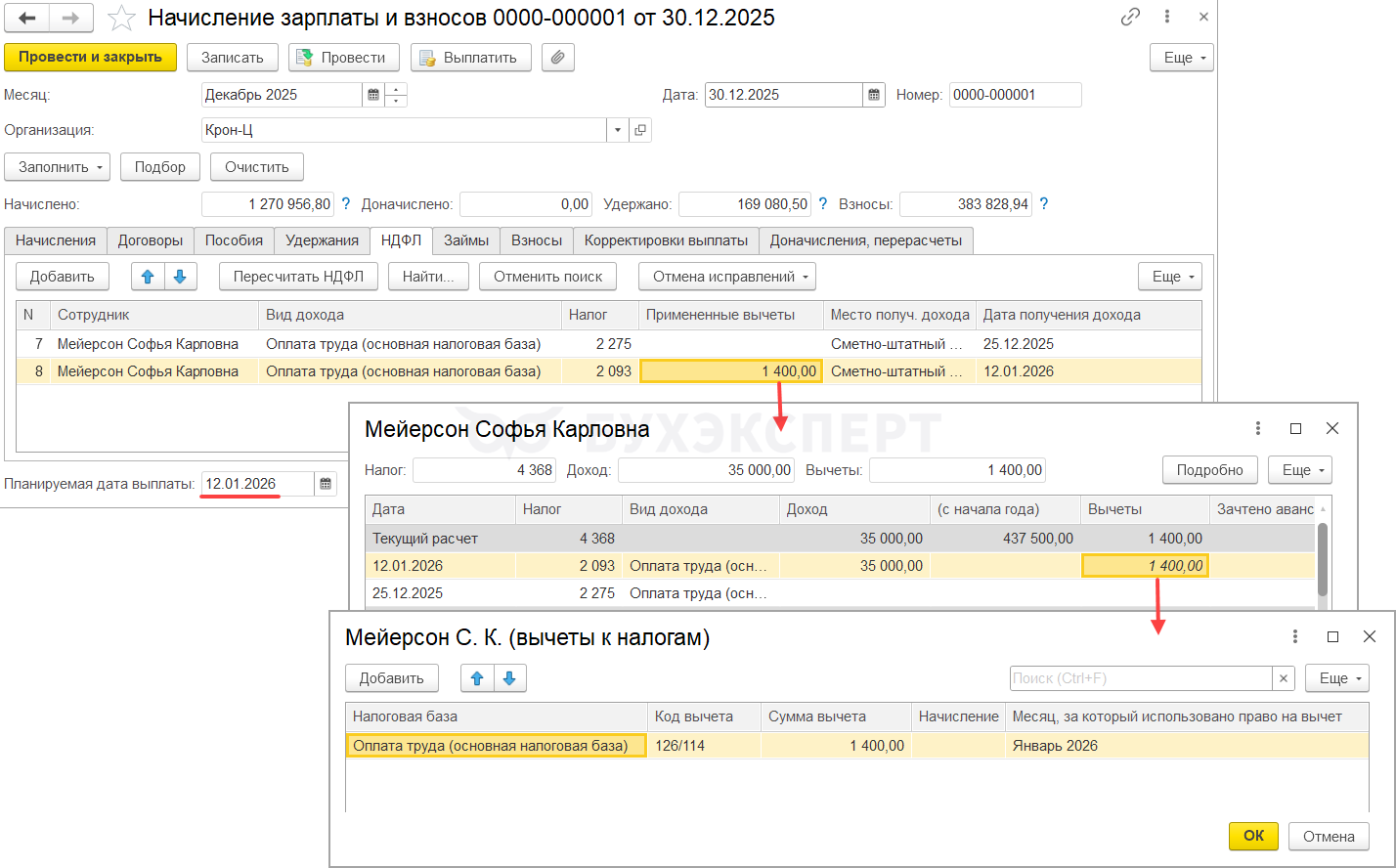 - Если сотрудникам положены стандартные вычеты, будут применены вычеты за январь 2026