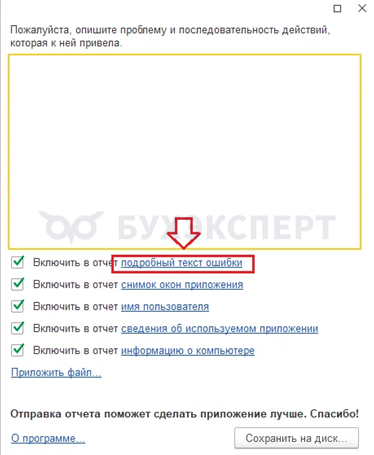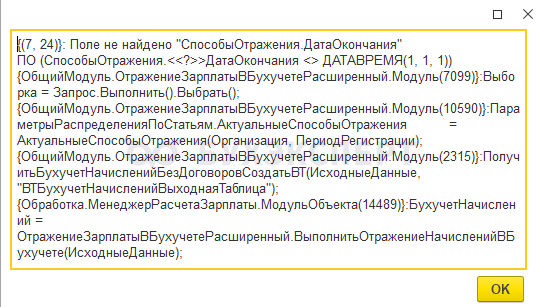 Данный текст поможет специалисту по 1С быстрее найти и исправить ошибку.