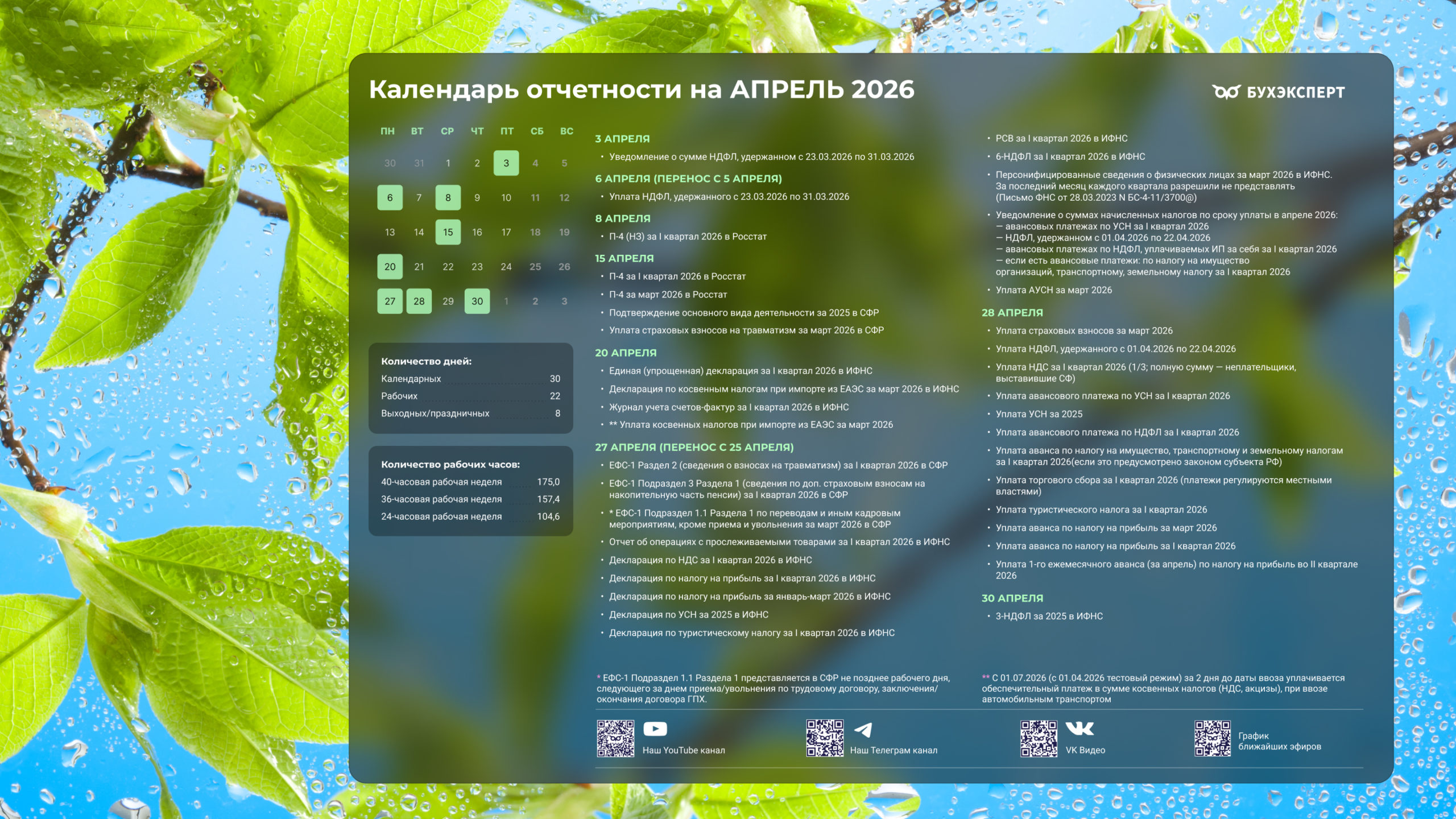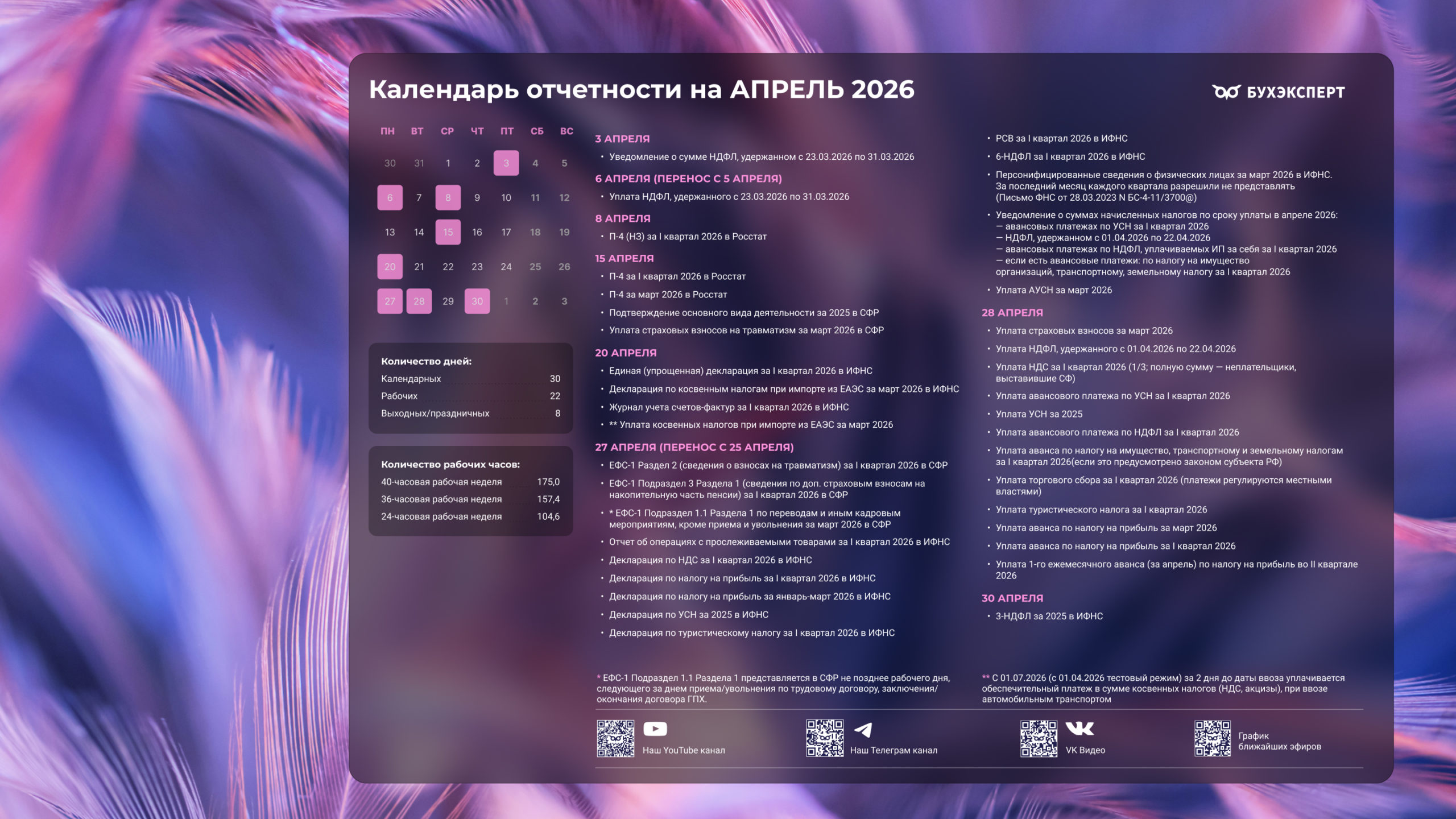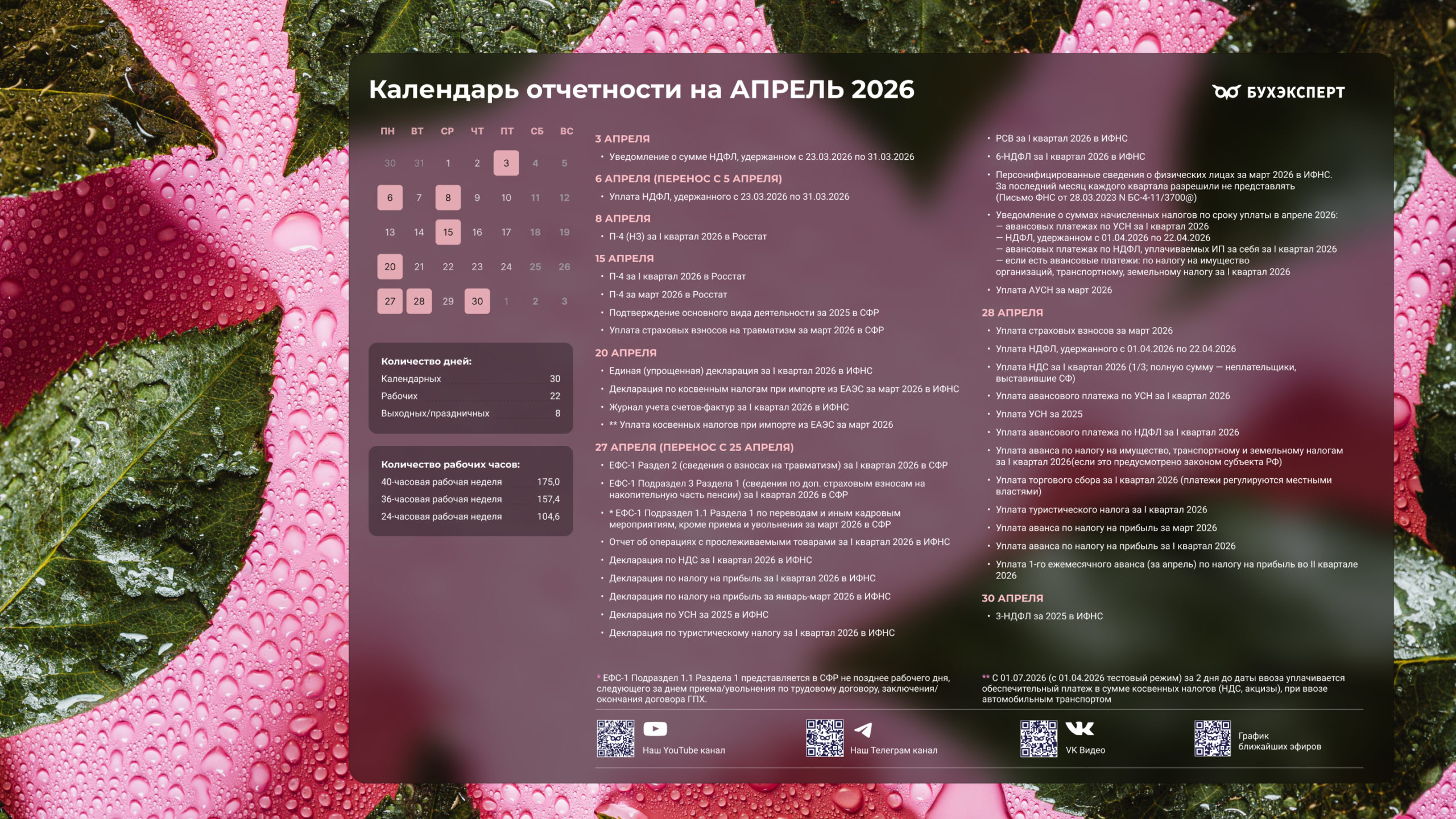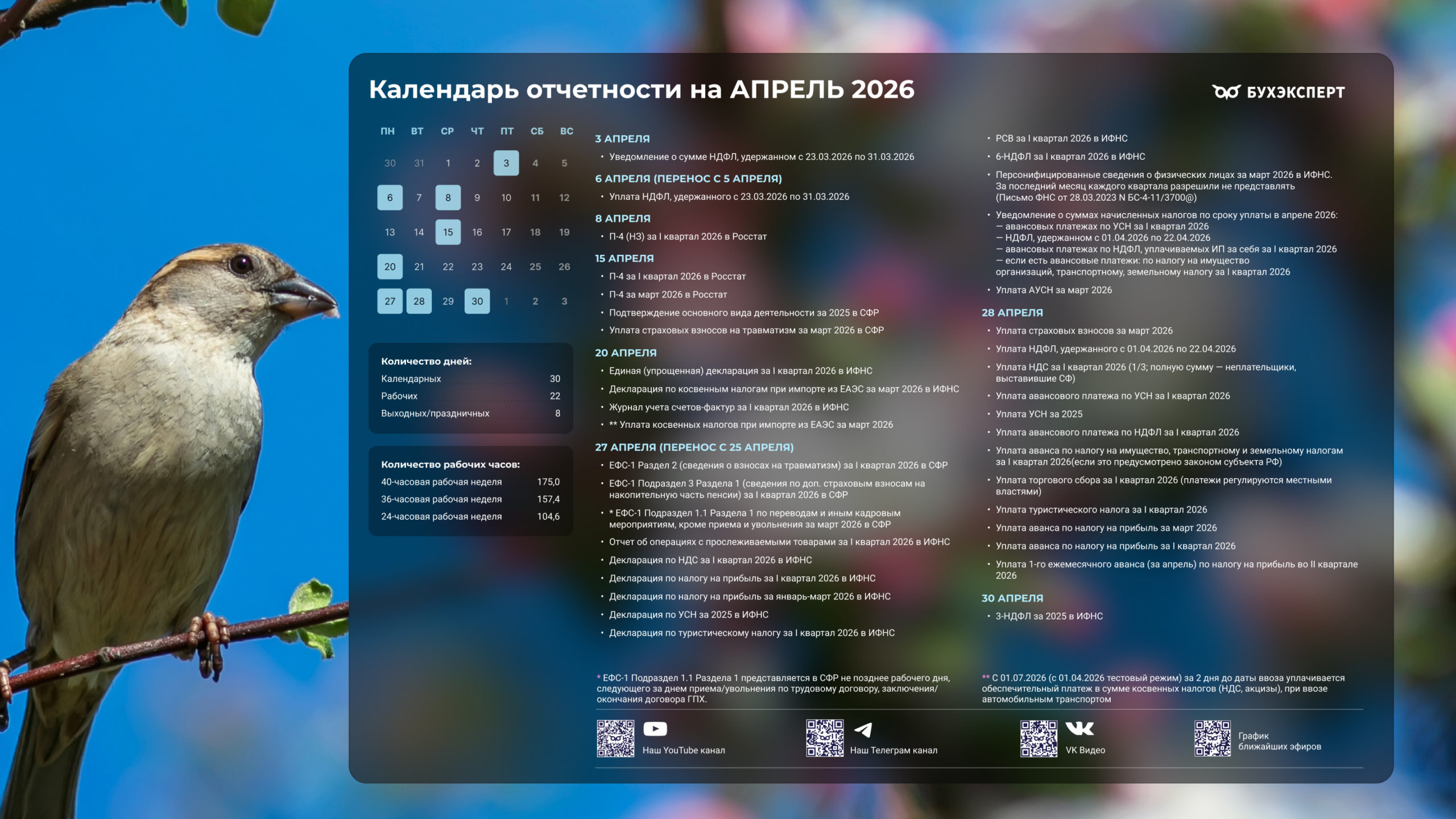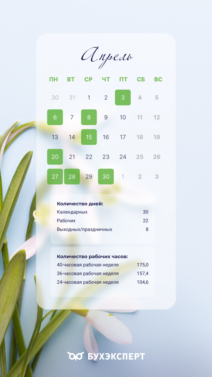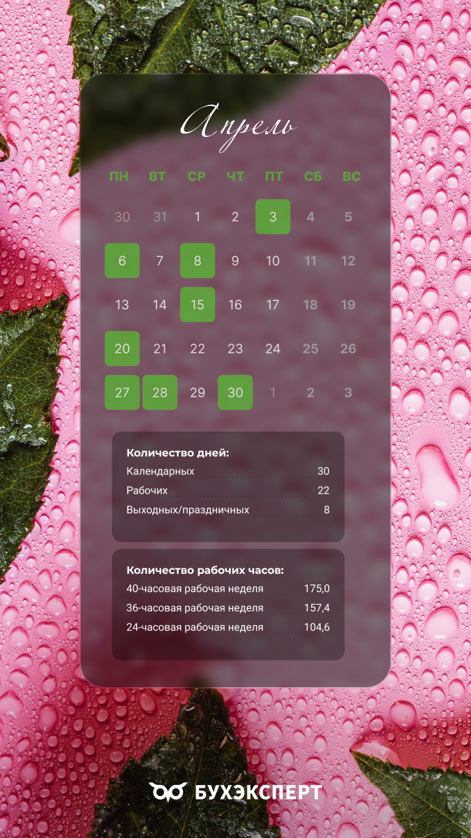 Бухгалтерский календарь на апрель 2026 — обои для рабочего стола