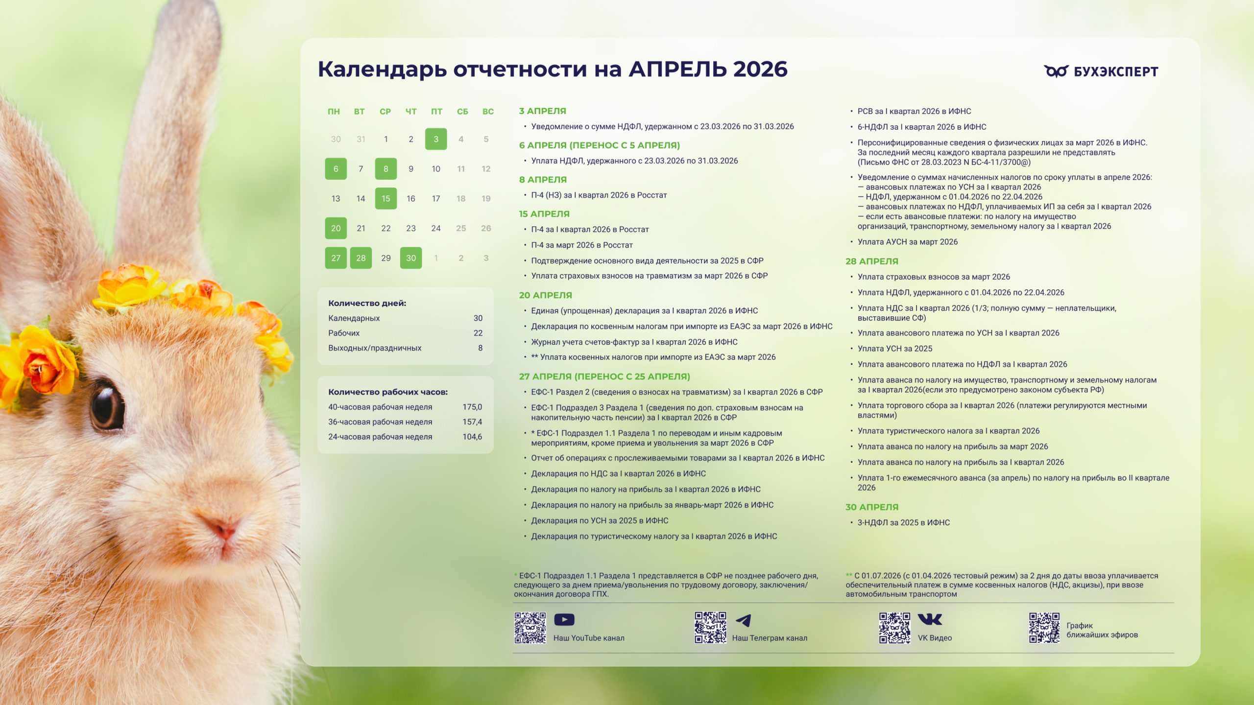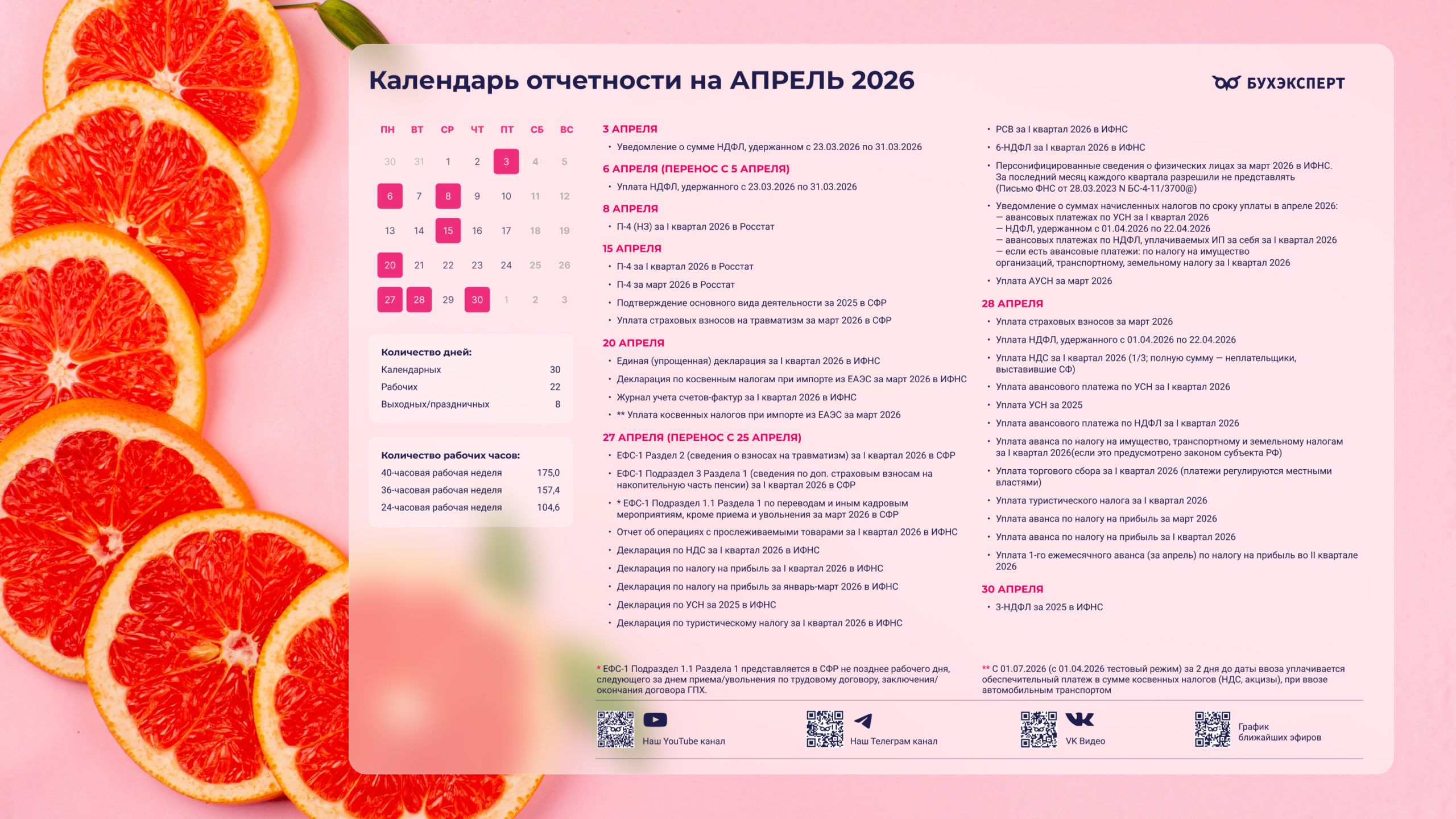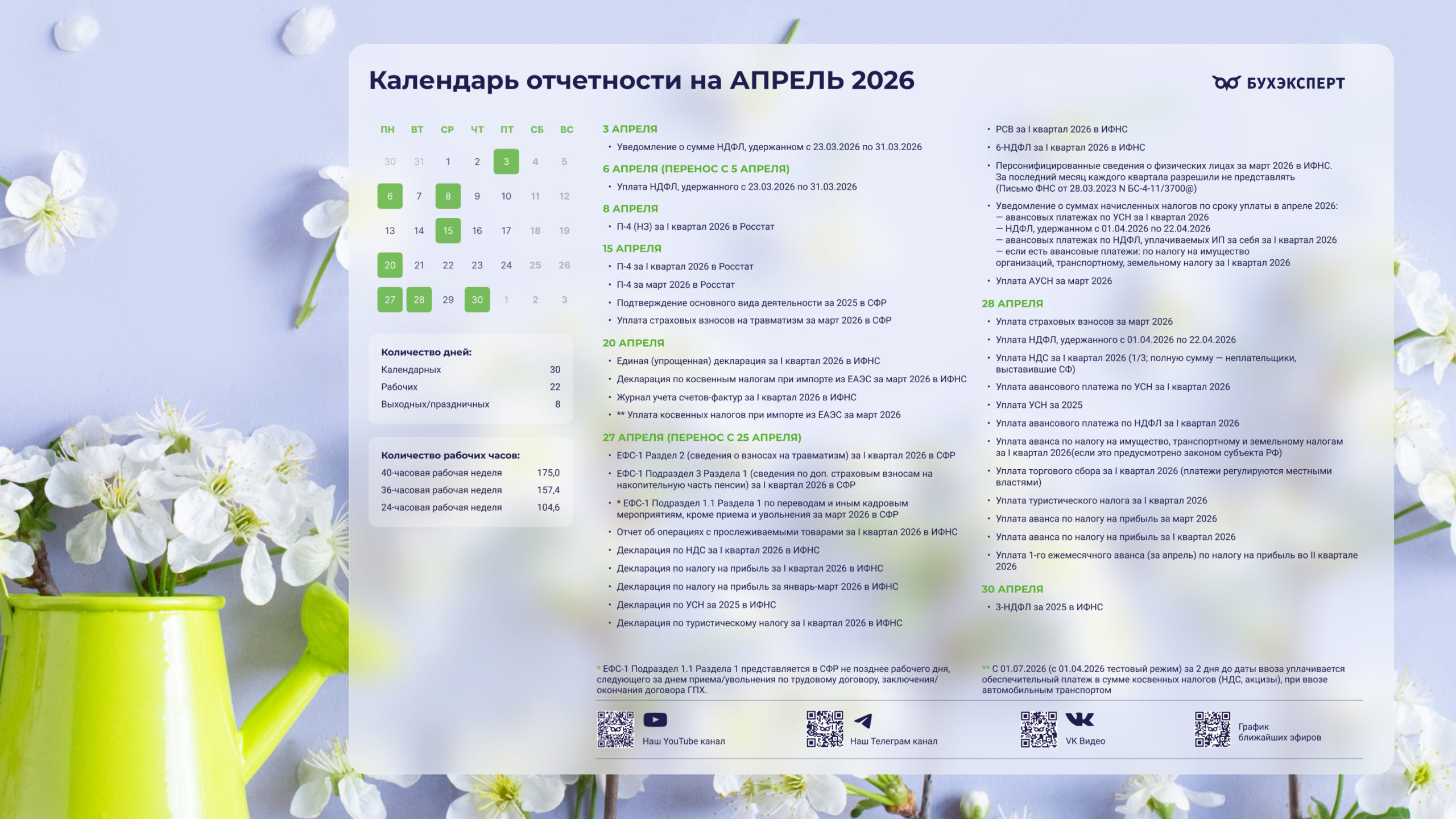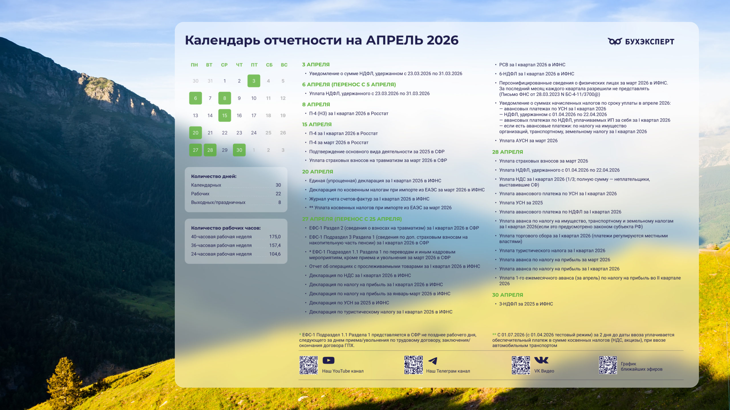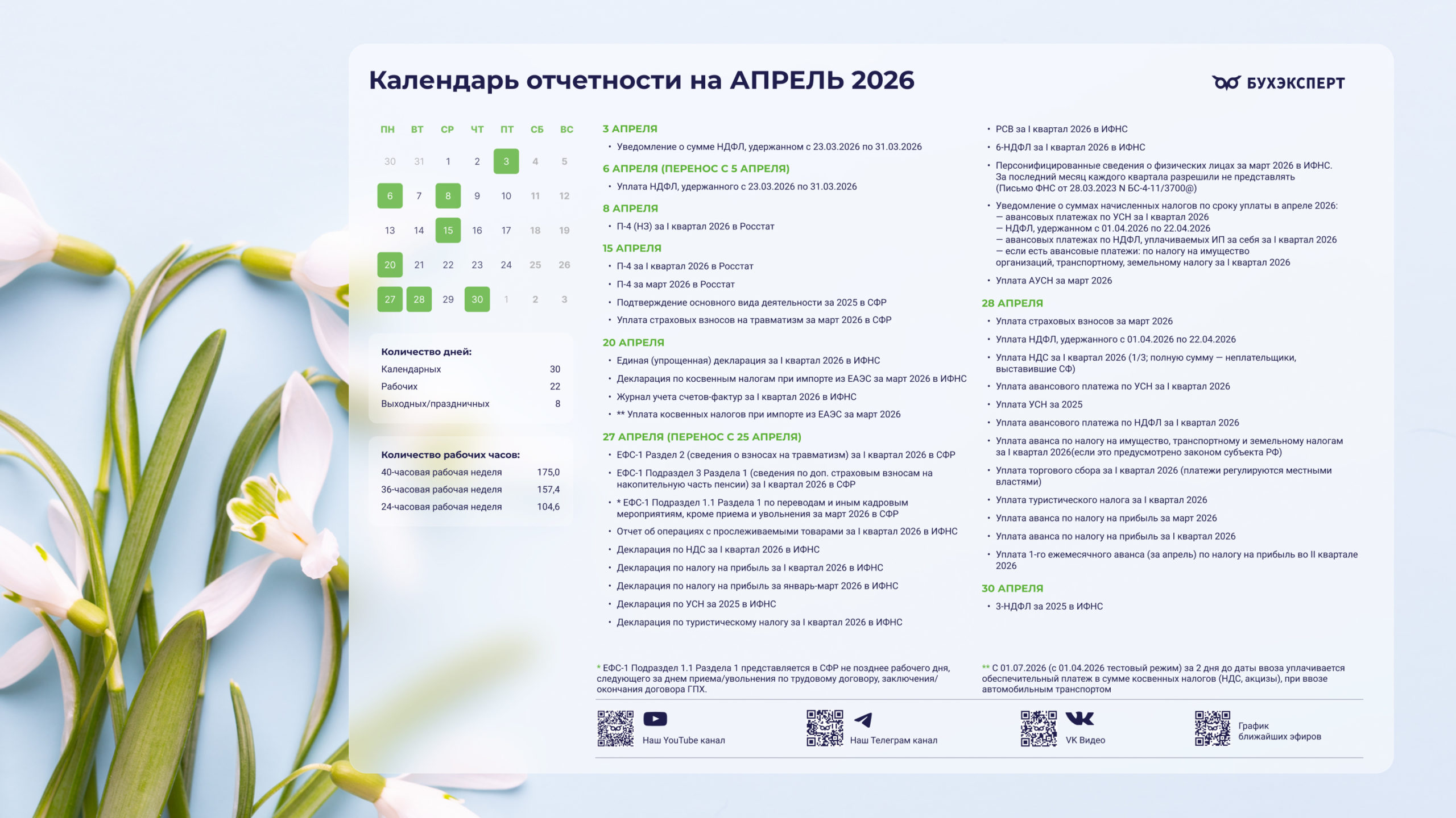 Бухгалтерский календарь на апрель 2026 — обои для рабочего стола