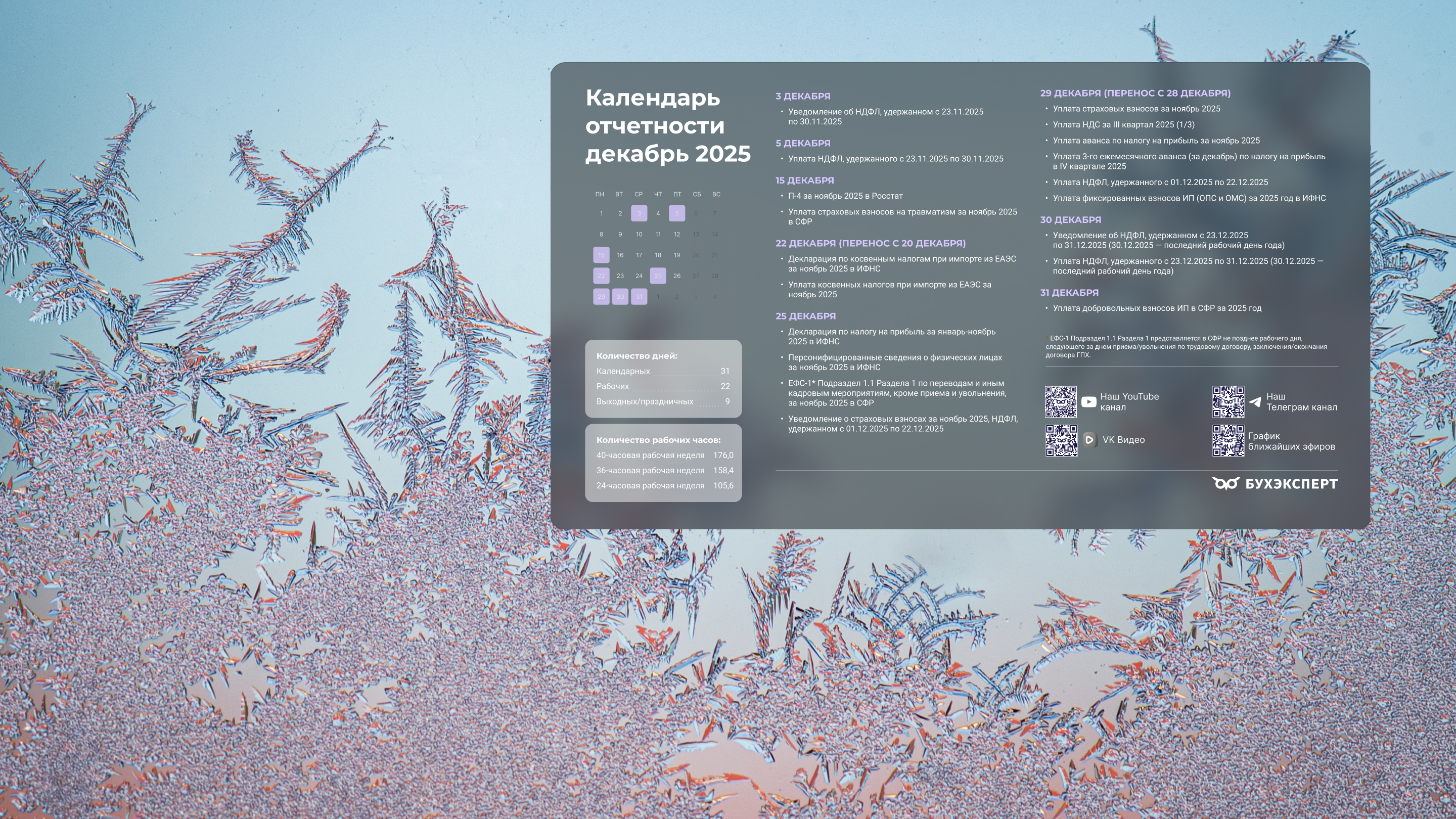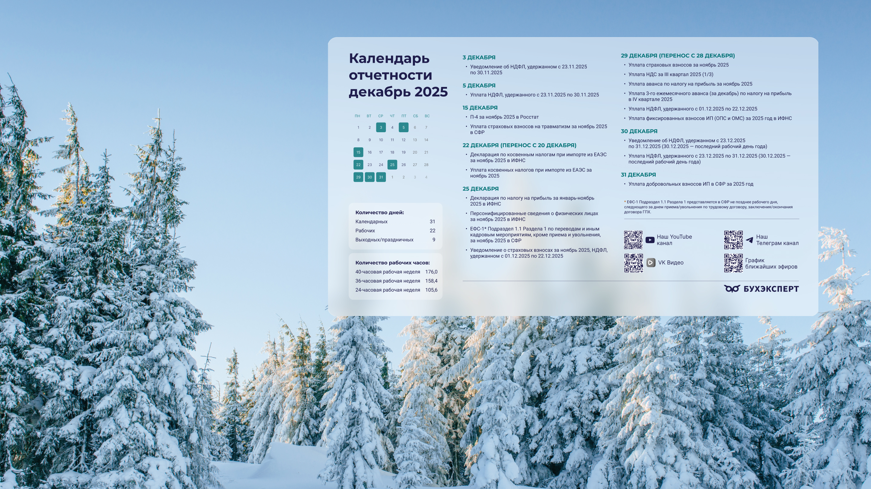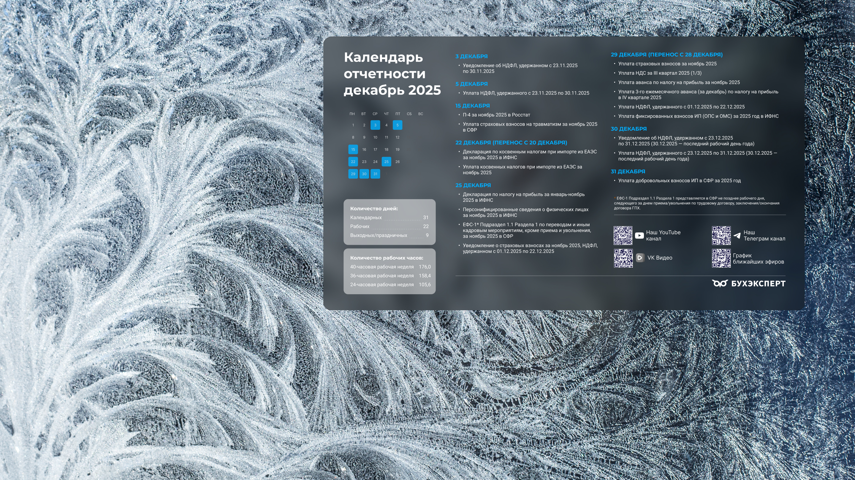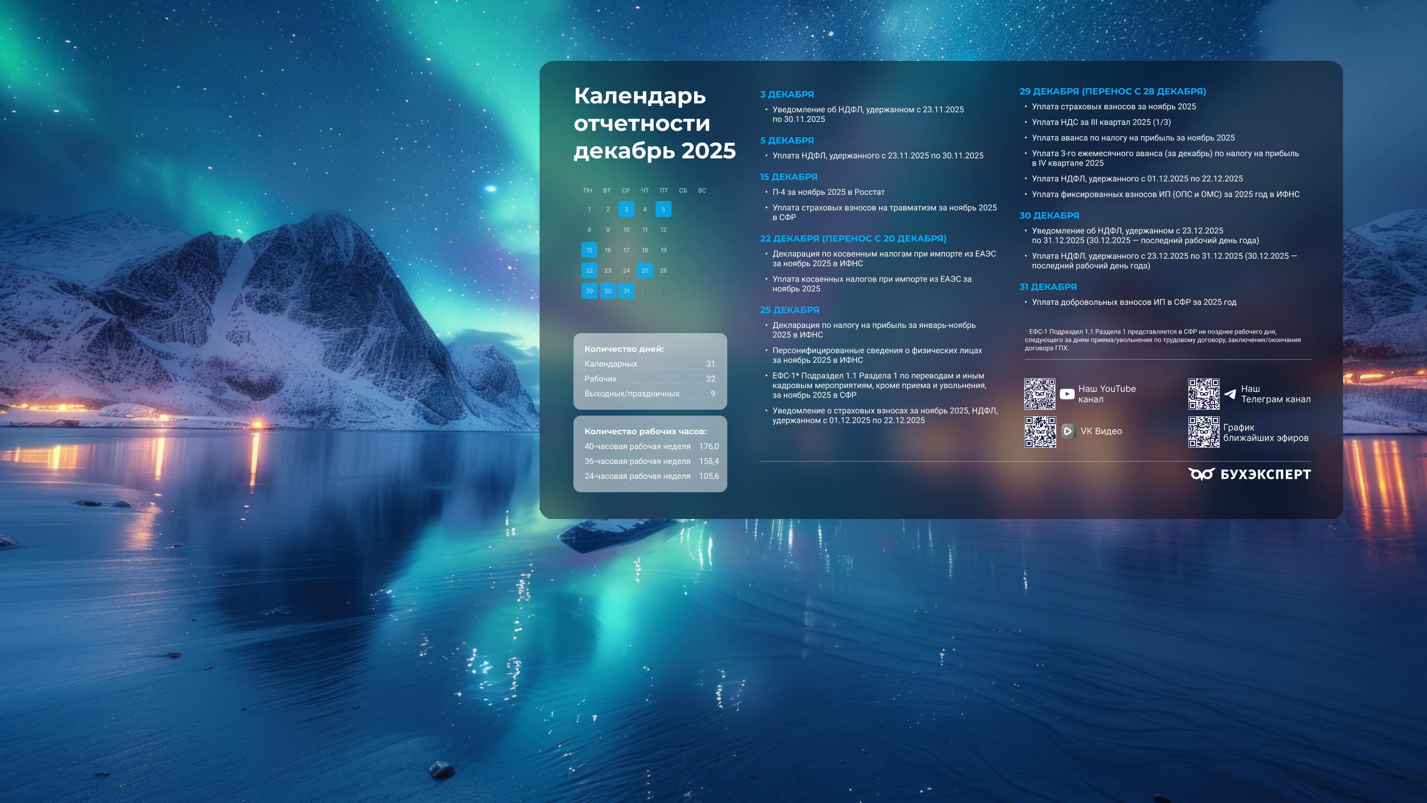 от команды Бухэксперт специально для бухгалтеровПоставив обои на рабочий стол, вы сможете всегда иметь перед глазами календарь с датами сдачи отчетности и перечисления платежей в бюджет. Кроме того, на обоях указаны выходные и праздничные дни, а также количество рабочих дней и часов, чтобы вам удобнее было заполнять табель и рассчитывать зарплату сотрудникам.