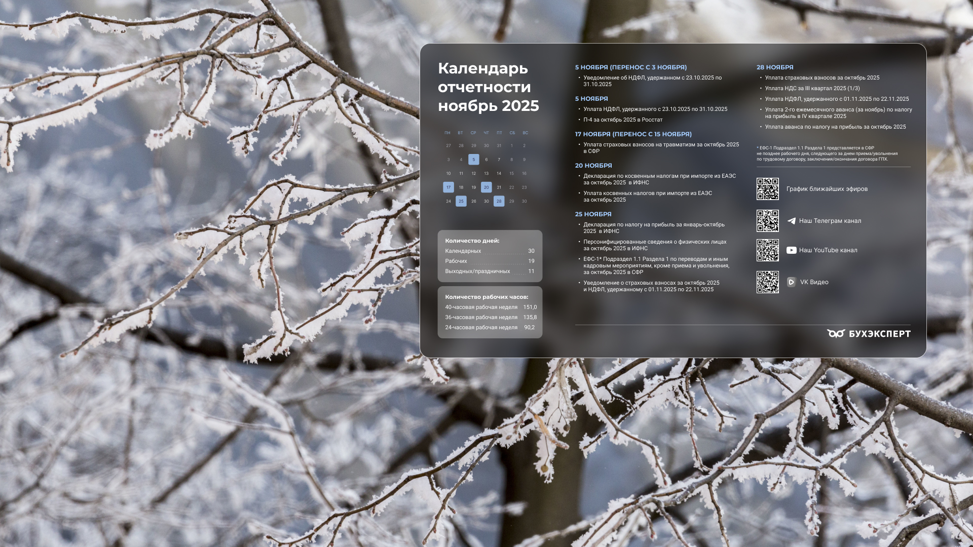 от команды Бухэксперт специально для бухгалтеровПоставив обои на рабочий стол, вы сможете всегда иметь перед глазами календарь с датами сдачи отчетности и перечисления платежей в бюджет. Кроме того, на обоях указаны выходные и праздничные дни, а также количество рабочих дней и часов, чтобы вам удобнее было заполнять табель и рассчитывать зарплату сотрудникам.