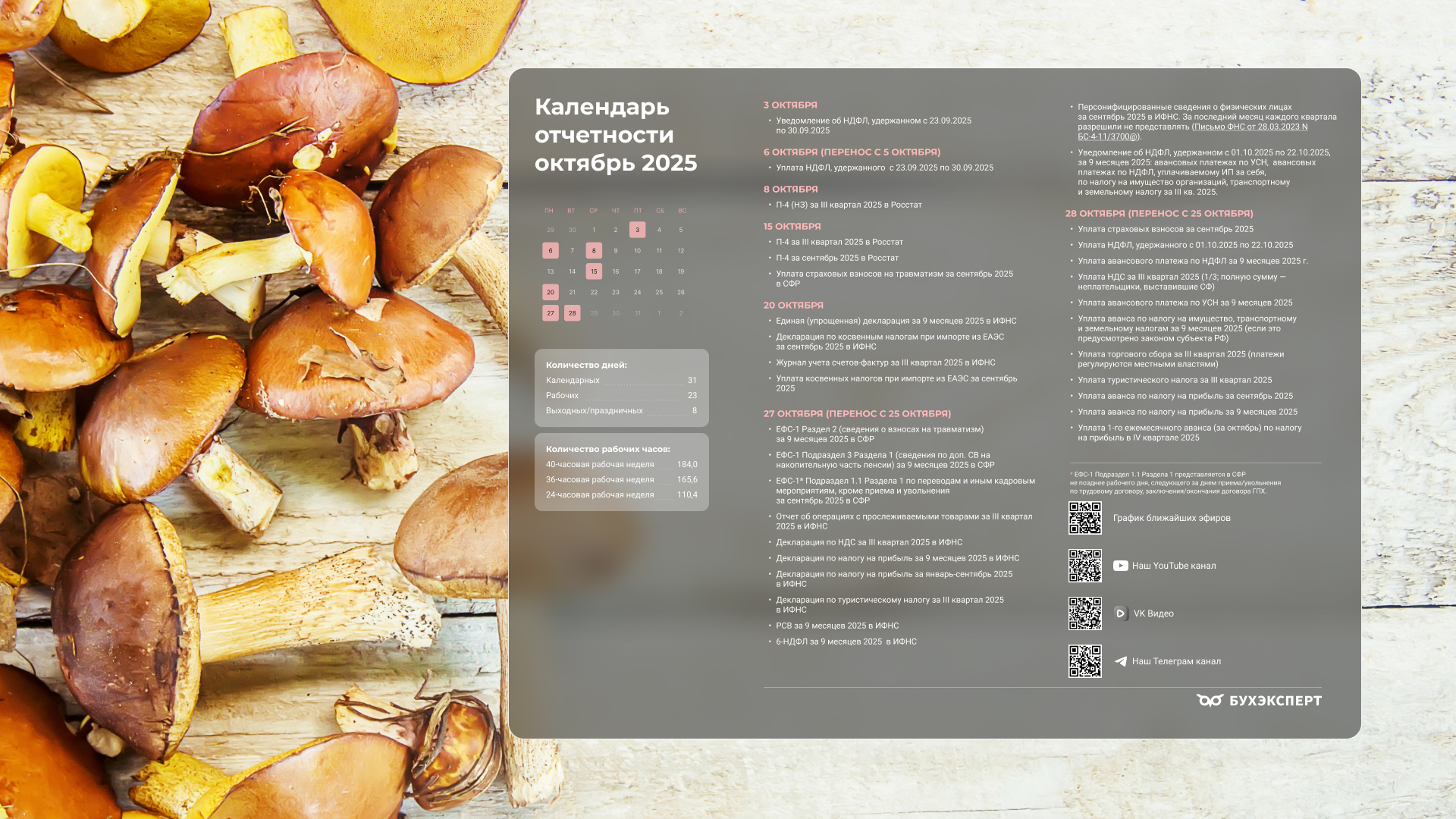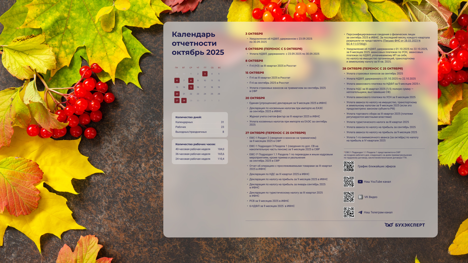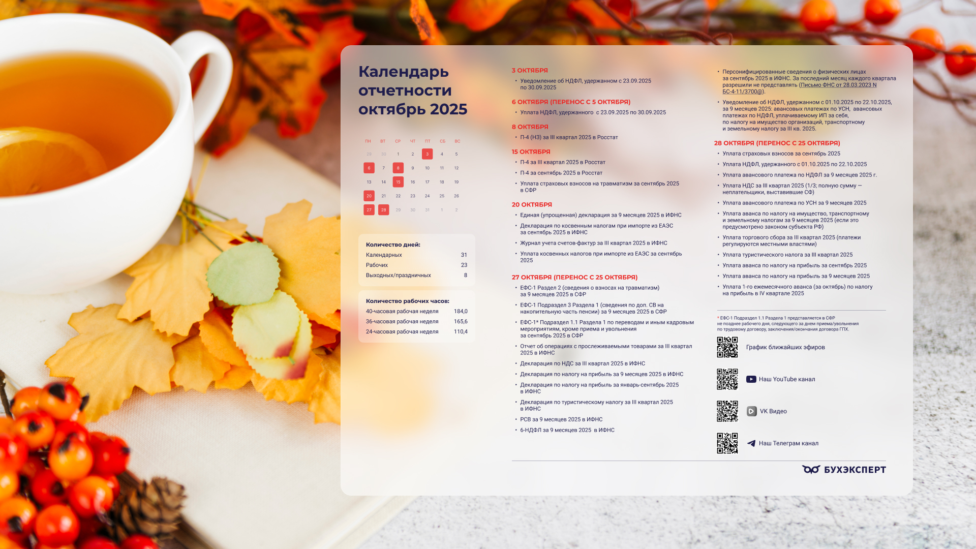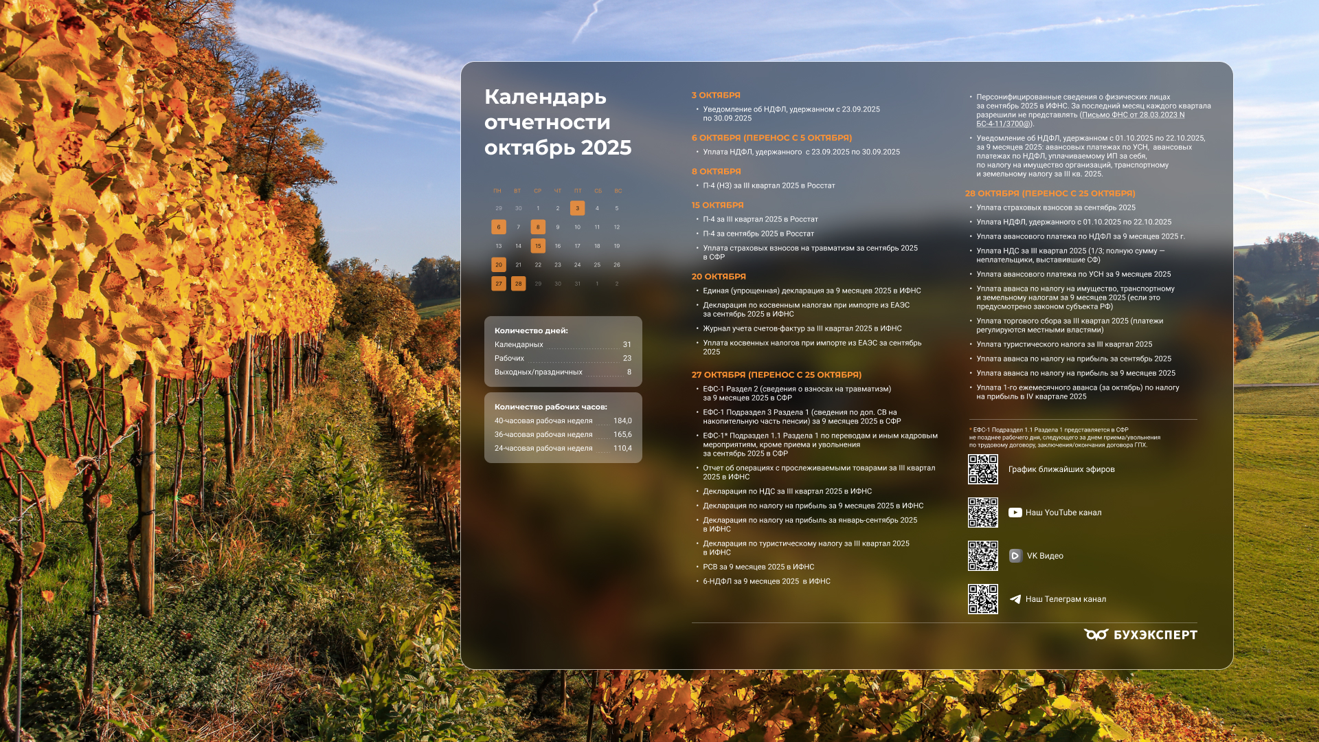 от команды Бухэксперт специально для бухгалтеровПоставив обои на рабочий стол, вы сможете всегда иметь перед глазами календарь с датами сдачи отчетности и перечисления платежей в бюджет. Кроме того, на обоях указаны выходные и праздничные дни, а также количество рабочих дней и часов, чтобы вам удобнее было заполнять табель и рассчитывать зарплату сотрудникам.