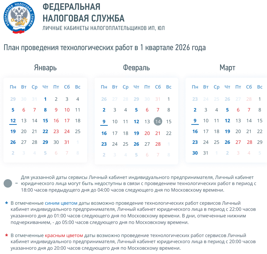 Скачать План технологических работ в ЛК налогоплательщика на сайте ФНС в 1 квартале 2026