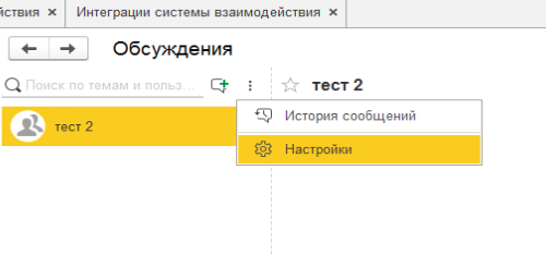 Настройка сервиса Обсуждения делится на настройку пользователем получения уведомлений в 1С и настройку оборудования по кнопке настройки (иконка «шестеренка»).