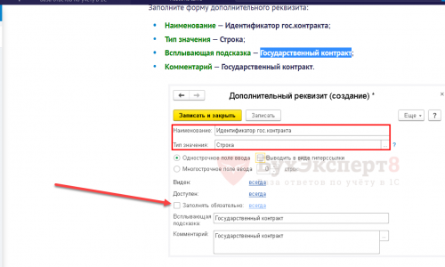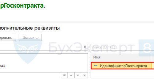 В процедуре ГосКонтракт_ПередЗаписью происходит подстановка значения единственного дополнительного реквизита Идентификатор гос.контракта из справочника Договора, который вводится для этой цели и описан в текущей инструкции.