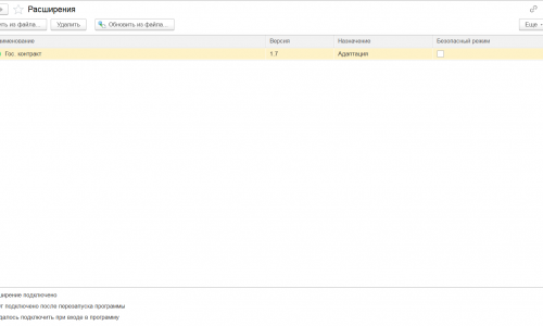 - По кнопке Добавить из файла загрузите расширение из файла ГосКонтракт_УПД_01.