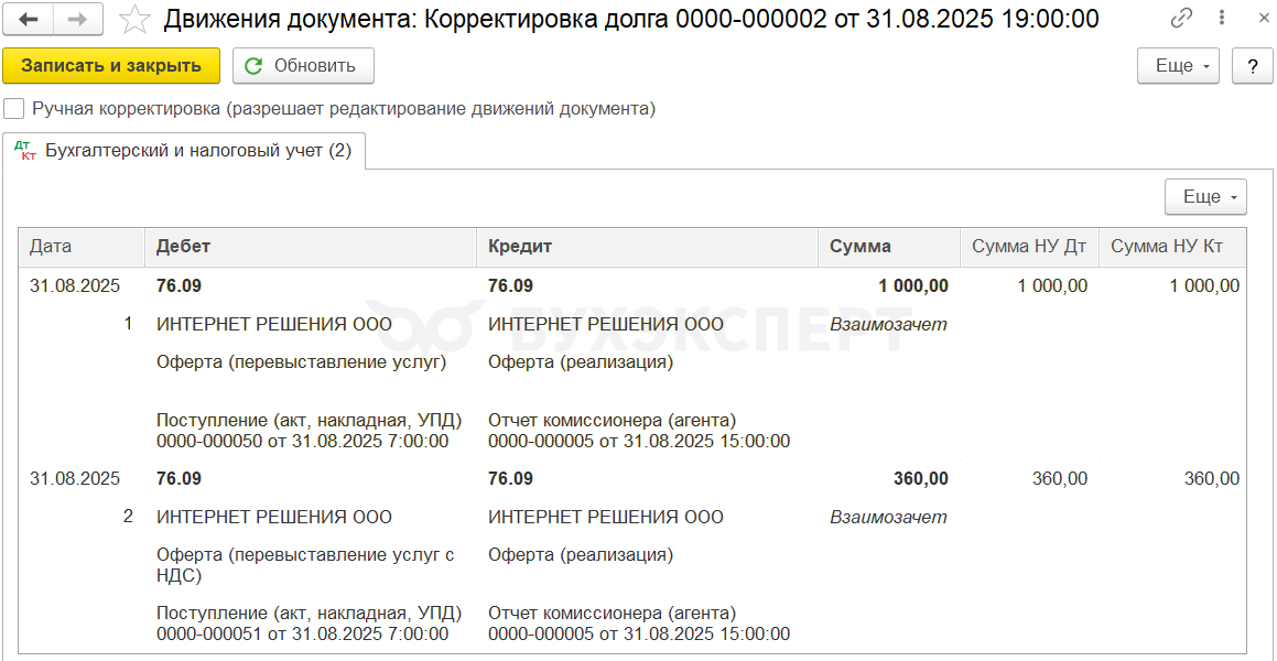 Кроме того, не вижу ,как бы это упростило процесс — все равно делать корректировку долга и заводить то же количество документов. Если что-то другое имели ввиду, уточните, пожалуйста.