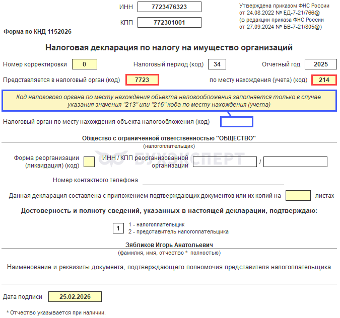Срок сдачи за 2025 год — до 25.02.2026