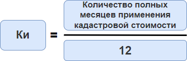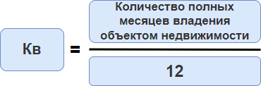 Определение количества полных месяцев для Кв и Ки одинаково. Например, количество полных месяцев владения имуществом определяется по количеству дней в месяце, с которого
