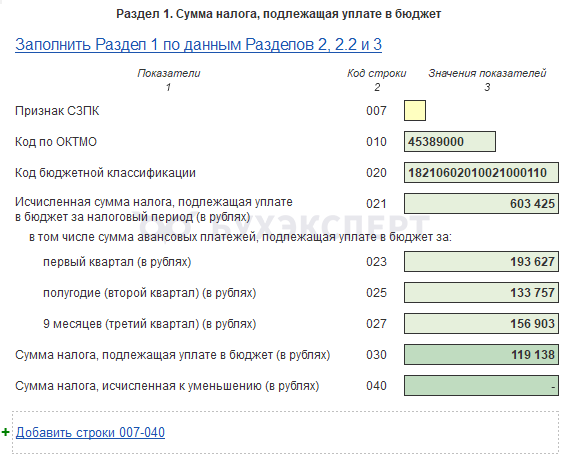 - Раздел 1 – налог к уплате