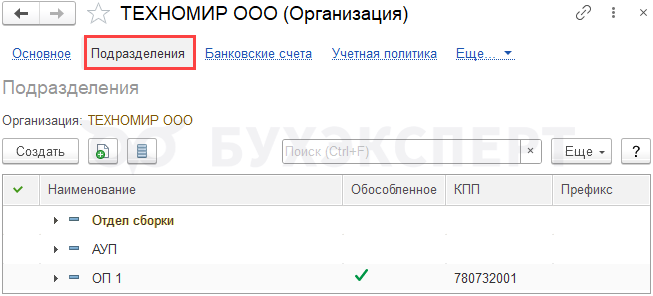 - Обособленное подразделение в 1С 8.3 Бухгалтерия