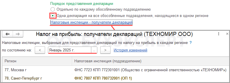 Декларация по налогу на прибыль с обособленными подразделениями в 1С ПРОФ