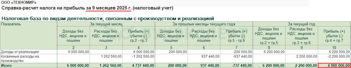 Прибыль за 9 месяцев составила 4 000 000 руб.