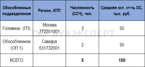 Организация, зарегистрированная в Москве, — головное подразделение (ГП) — ведет деятельность в Самаре — обособленное подразделение (ОП 1).