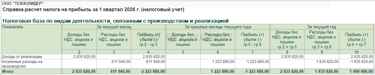 Сначала определяем прибыль по всей организации, вне зависимости от доли выручки, внереализационных доходов и расходов, приходящихся на ОП.
